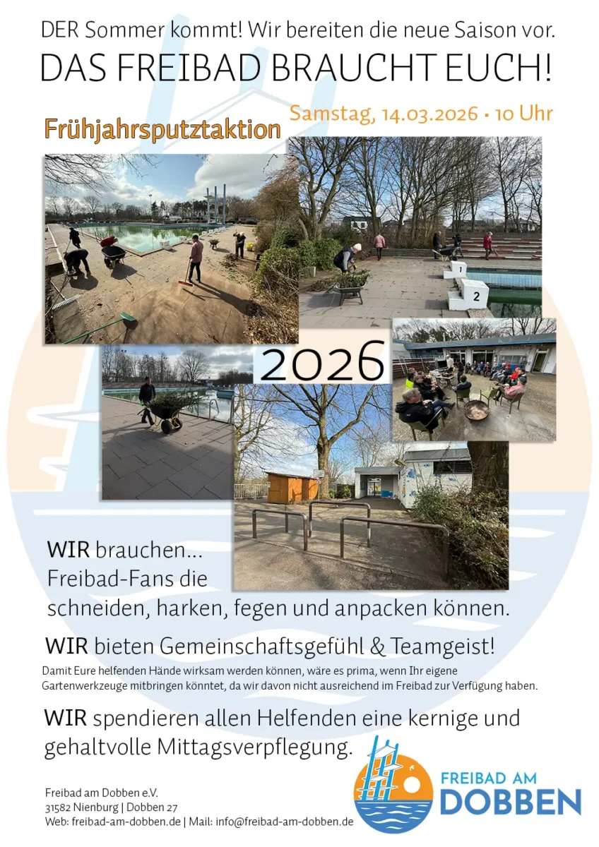 Zu unserem grundsätzlichem Bestreben das Freibad am Dobben zu sanieren, informieren wir fortgesetzt über die aktuellen Entwicklungen auf unserer Unterseite SANIERUNGSVORHABEN